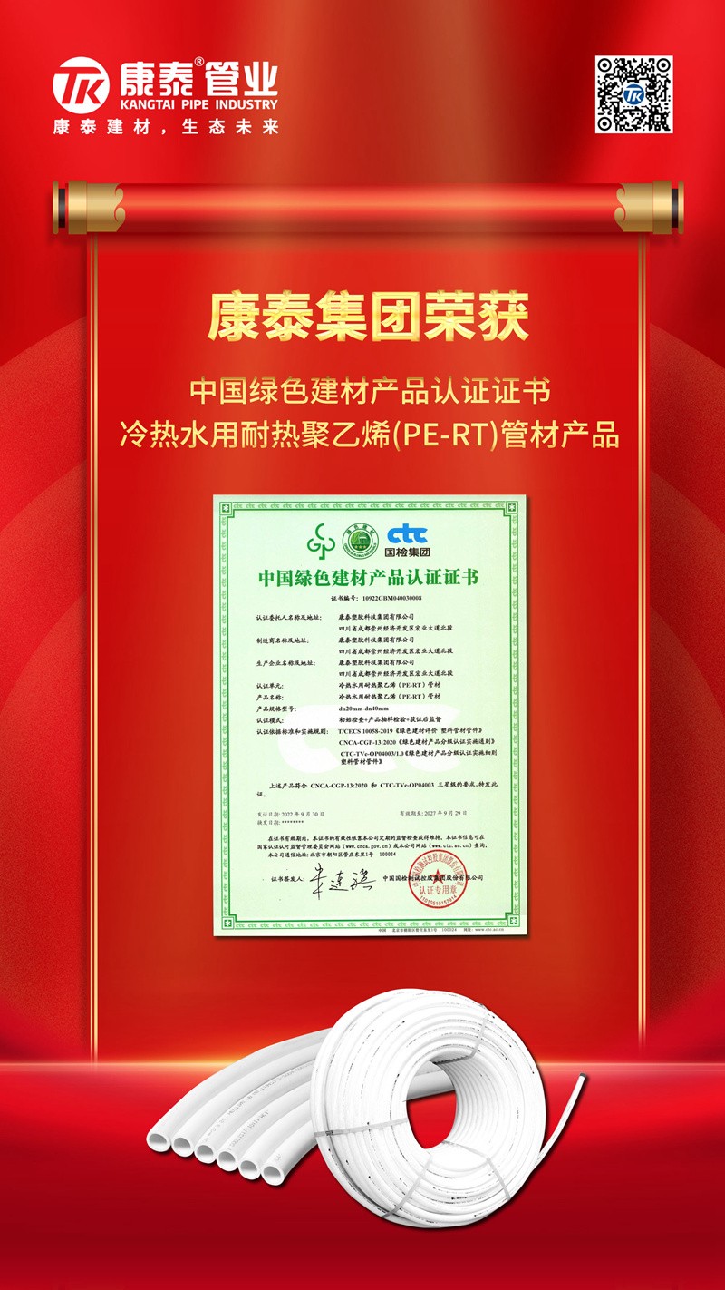 康泰塑膠:造綠色產(chǎn)品,享健康生活2022/10/11 6623近日,康泰塑膠的給水用聚乙烯(PE)管材、管件產(chǎn)品,燃氣用埋地聚乙烯(...read more -
